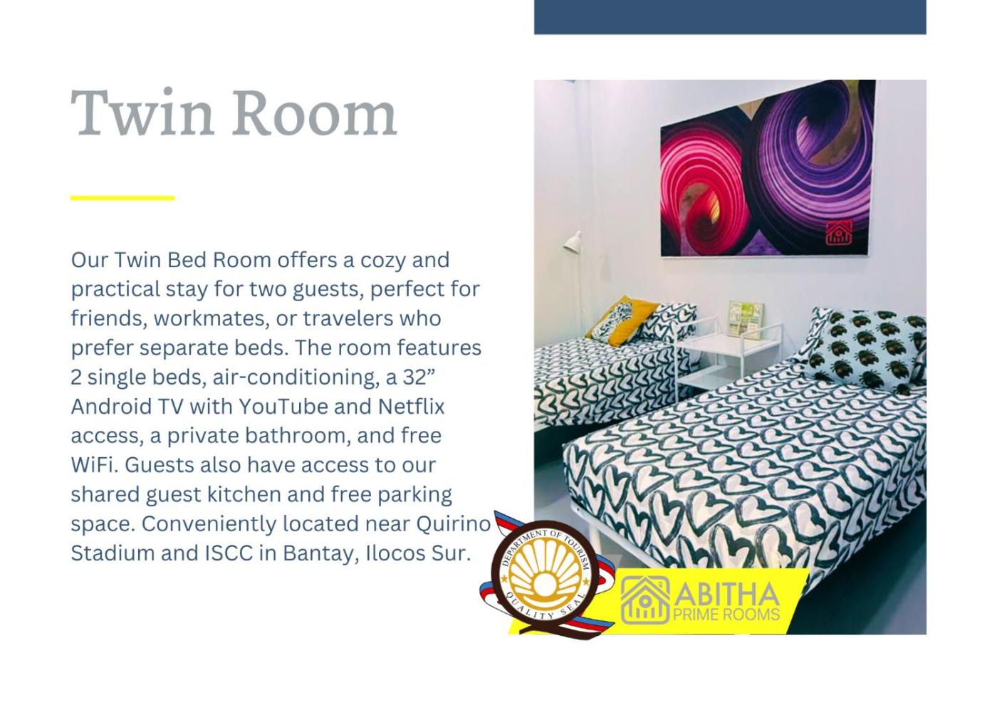 Additional information about the offer Philippines - Bantay - Abitha Prime Rooms, opinions of holidaymakers as well as available dates can be found on the website our partner.