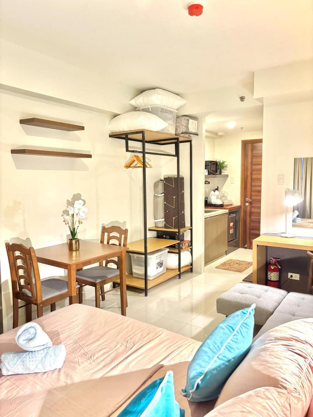 King Studio with Sofa Bed. Providing free toiletries, this studio includes a private bathroom with a shower, a bidet and slippers. The well-equipped kitchen features a stovetop, a refrigerator, kitchenware and a microwave. The air-conditioned studio provides a flat-screen TV with streaming services, a dining area, a safe deposit box, an electric kettle as well as city views. The unit offers 2 beds.