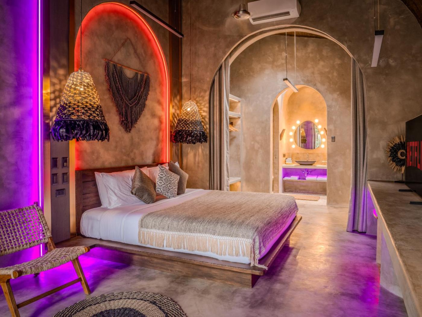 One-Bedroom Villa. Guests will have a special experience as this villa provides a pool with a view. Boasting a private entrance, this air-conditioned villa includes 1 living room, 1 separate bedroom and 1 bathroom with a shower and a bidet. Guests will find a stovetop, a refrigerator, kitchenware and an oven in the well-fitted kitchen. The villa also features a barbecue. Featuring a terrace with garden views, this villa also offers soundproof walls and a flat-screen TV with streaming services. The unit has 1 bed. ;